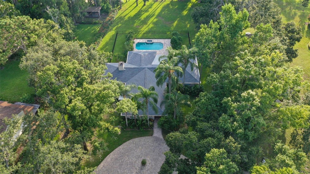 One or more photo(s) has been virtually staged. This one might just check all of your boxes. 1.5 acre homesite located on beautiful fish filled 18 acre Lake Wood, this well taken care of home may just surprise you. Stunning Kitchen with quartz countertops, white soft close cabinets, stainless appliances, an island with waterfall quartz edging. The kitchen opens directly to the formal dining room and grand family room with loads of natural light and views of the pool/spa, gorgeous Florida landscaping and breathtaking lake views. The cozy living room has a wood burning fireplace which is adjacent to the kitchen. Make your way down the hallway and you will meet the 2nd bedroom with access to its own en-suite bath with seamless shower and soaking tub. Across the hallway is the large office/den/bonus room or 4th bedroom with sliders to the outdoor oasis. The primary suite is one to talk about with loads of natural light, sliders to a private brick paved patio, huge walk in closet and an en-suite spa like bathroom built for a queen. Oversized walk in seamless shower with tower panel shower system, oversized soaking tub and dual sinks. The 3rd bedroom could serve as a secondary primary or an attached in law suite, spacious in size with a walk in closet and an attached en-suite bath. Planation shutters adorned throughout most of the home, 2025 total ROOF replacement, 2020 Geo Thermal HVAC's, tankless hot water heater, propane heated salt water pool and spa and central vacuum system. Additionally there is a detached 3+ car garage, a detached outbuilding perfect for boat storage and an additional storage shed for your lawn equipment. Private dock with multiple covered and uncovered area's. The lake is perfect for fishing, jet skiing, kayaking and is the host to the most beautiful sunsets. The property has NO HOA, can be accessed through Rogers road or Forrest Drive and is located in the coveted Steinbrenner, Martinez, Hammond school district. Only 4 minutes to the Suncoast expressway and the Suncoast Trail where you can bike, ride or hike the beautiful Keystone area.