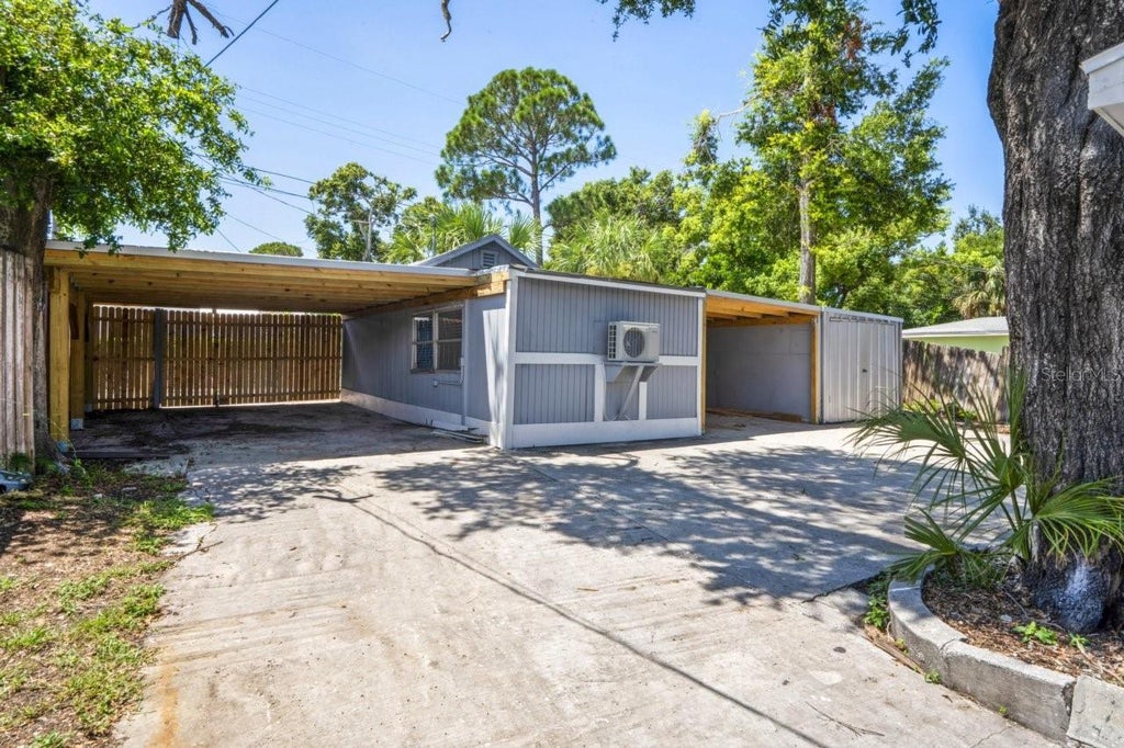 A cozy studio/efficiency is available immediately, featuring new kitchen counters, new shower tiles, flooring and fresh paint. It includes a combined bedroom/living room, a kitchen, and a full bathroom. Conveniently located near the Gulf of America in Clearwater, Florida, this studio is tucked behind the main house and perfect for someone working in the city during the week or looking for a weekend beach retreat. The main house is also available for lease, making this studio ideal as a mother-in-law or caregiver home.